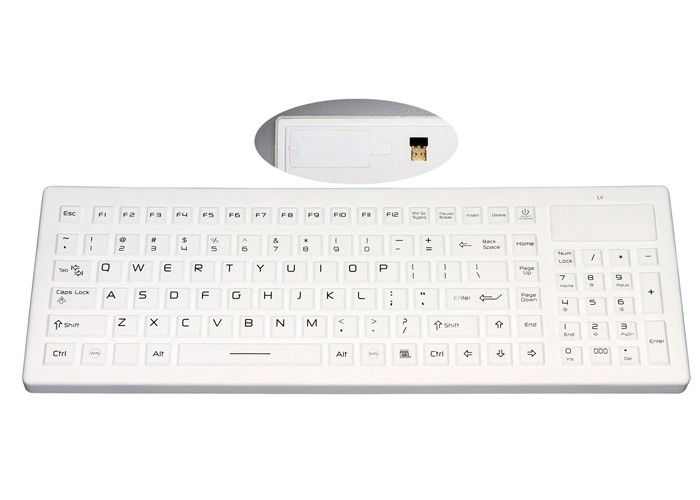 KINGLEADER এর SKB-126-WL হল একটি ওয়াটারপ্রুফ ওয়্যারলেস মেডিকেল কীবোর্ড যা নম্বর প্যাড এবং কাস্টম লোগো মুদ্রণের জন্য একটি ডেডিকেটেড অবস্থান সহ।